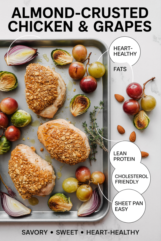 This unique and delicious dish combines the savory flavors of almond-crusted chicken with the sweetness of roasted grapes. Almonds are a heart-healthy nut that can help lower cholesterol. Grapes contain pectin, a type of soluble fiber, and antioxidants. The combination of flavors and textures in this dish is sure to be a hit.