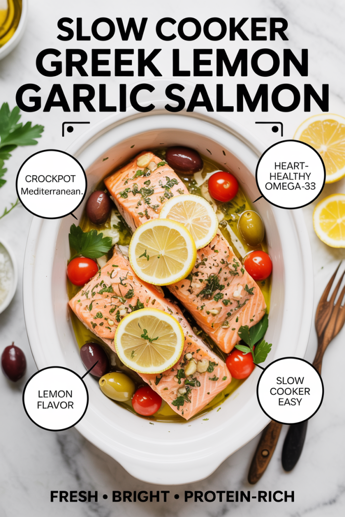 17. Slow Cooker Greek Lemon Garlic Salmon