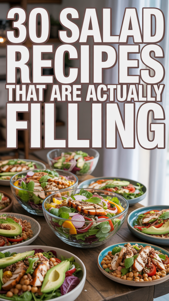 Salads don’t have to be boring or unsatisfying. With the right mix of ingredients and a dash of creativity, they can be hearty meals that fuel your day. I hope these 30 filling salad recipes inspire you to think outside the bowl and explore new flavor combinations.