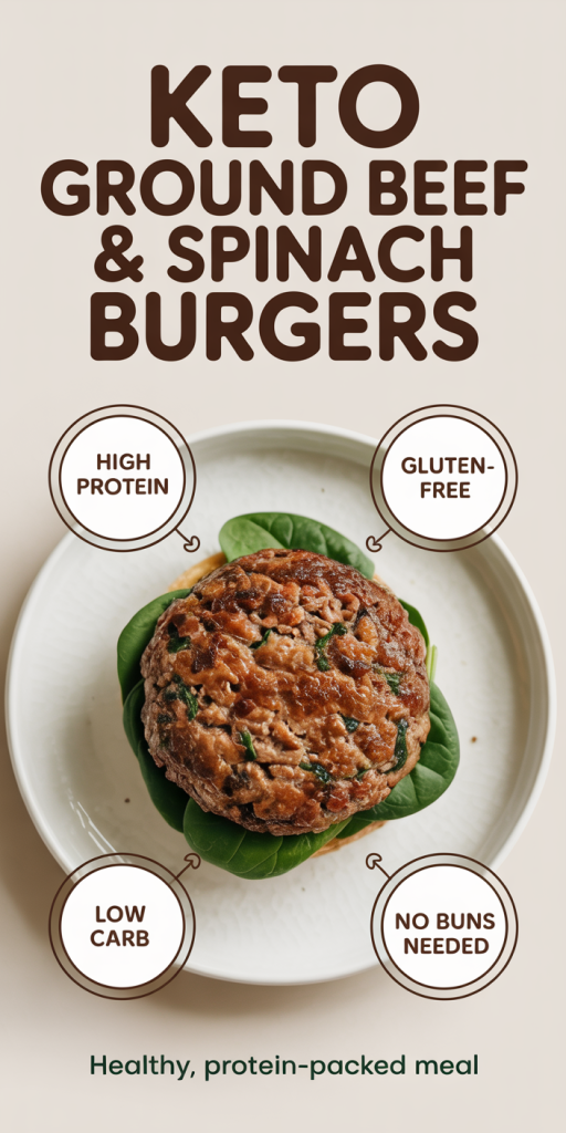 Keto Delicious Ground Beef and Spinach Burgers